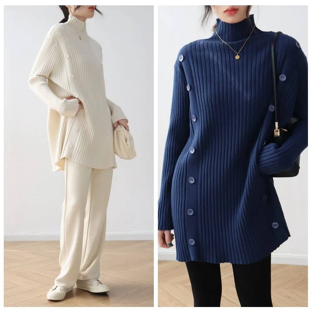 ストレートワンピース レディース 秋冬 ワンピース ニットワンピース 長袖 ハーフハイネック ゆったり セーターワンピース インナーワンピース 無地 シンプル カジュアル おしゃれ 普段着 おでかけ