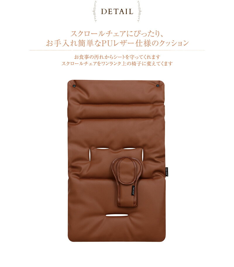 ・「座面が布だからお手入れが大変そう」という、不安の声を解決するためにデザインした、スクロールチェアPlus専用のハイチェア用クッションです。