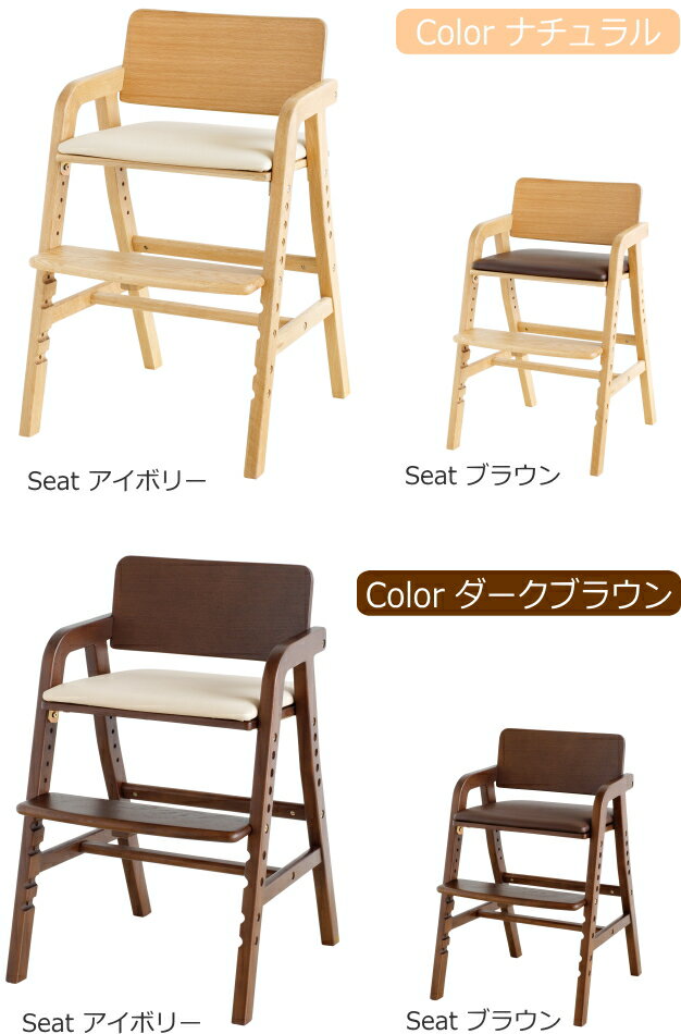 チェア本体の色はナチュラルとダークブウンの2色、シートはアイボリーとブラウンがあります。