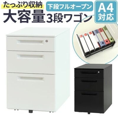 デスクワゴン 完成品 サイドワゴン 1年安心保証 オフィスワゴン 大容量 3段 組立て不要 キャスター付き 鍵付き ホワイト ブラック サイドデスク ワゴン A4 ファイル デスクキャビネット 60cm 収納 脇机 事務机