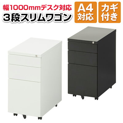 スリムワゴン デスクワゴン 鍵付き サイドワゴン 3段 オフィスワゴン オールロック キャスター付き キャビネット サイドキャビネット スチールワゴン オフィスワゴン オフィス収納 脇机 事務機 ホワイト ブラック A4対応 白 黒 606 DEVAISE