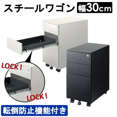 サイドワゴン スチールワゴン キャスター付き 3段 幅30cm オフィスワゴン ワゴン 鍵付き オールロック 3段ワゴン デスク オフィス 収納 スチール キャビネット 脇机 デスクキャビネット A4 引き出し FW-02【SB】 【代引き不可】 FW-02